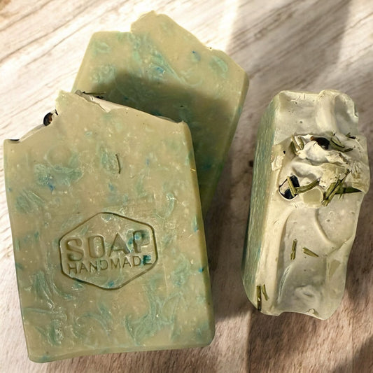 Typically, it features nourishing ingredients such as oils (like olive, coconut, or shea butter), natural fragrances from essential oils, and sometimes botanical elements like herbs, flowers, or even natural colorants. The cold process method is commonly used, where fats and lye combine to create soap through a chemical reaction, resulting in a rich, moisturizing bar.