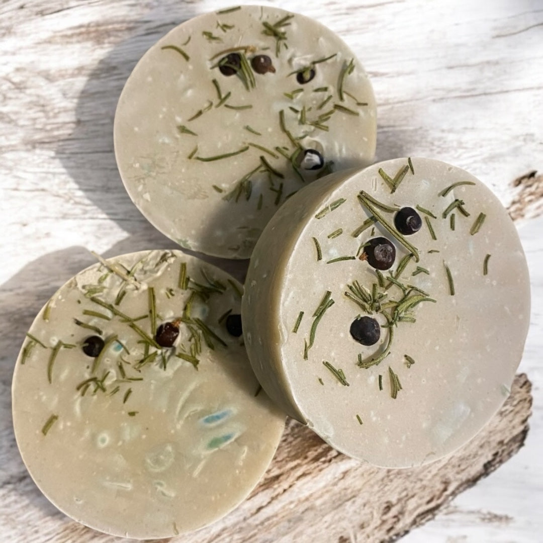 Description: This artisansoap combines the invigorating scents of juniper berry, rosemary, lemongrass, patchouli, peppermint, and tea tree, creating a refreshing and uplifting experience perfect for the festive season. Handcrafted with care, this soap not only cleanses but also energizes the senses, embodying the essence of the holidays.